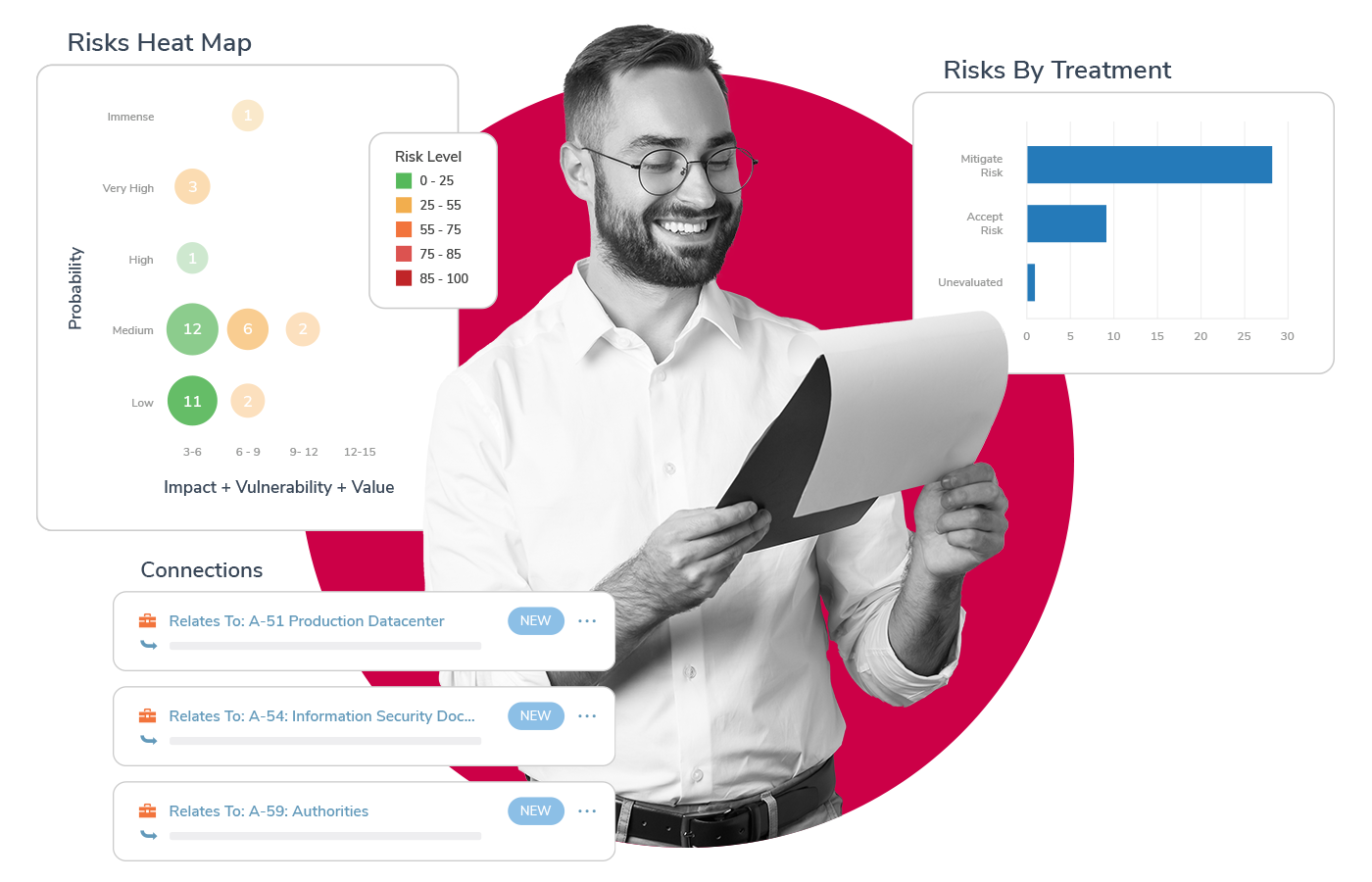Deliver visibility into your ISO 42001 program and ensure your data is secure. Monitor the entire risk and compliance lifecycle and efficiently close any gaps.